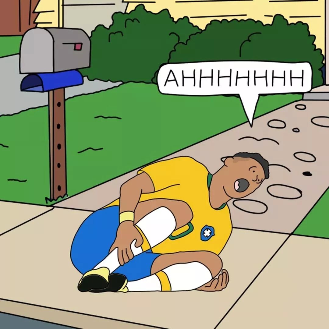 在八分之一決賽對戰與墨西哥時,內馬爾在被踩踏之後,上演了更為誇張的一幕。 比賽第71分鐘時,內馬爾對抗後摔出了邊線,雙腿將皮球夾著坐在地上。 墨西哥隊員拉雲想要抱走皮球,但他的右腳前腳掌卻踩到了內馬爾的右腳踝上。