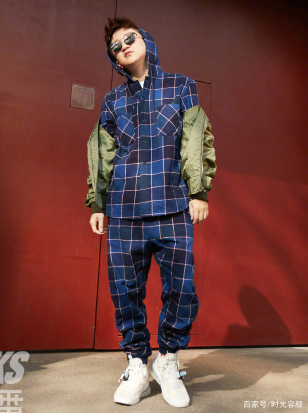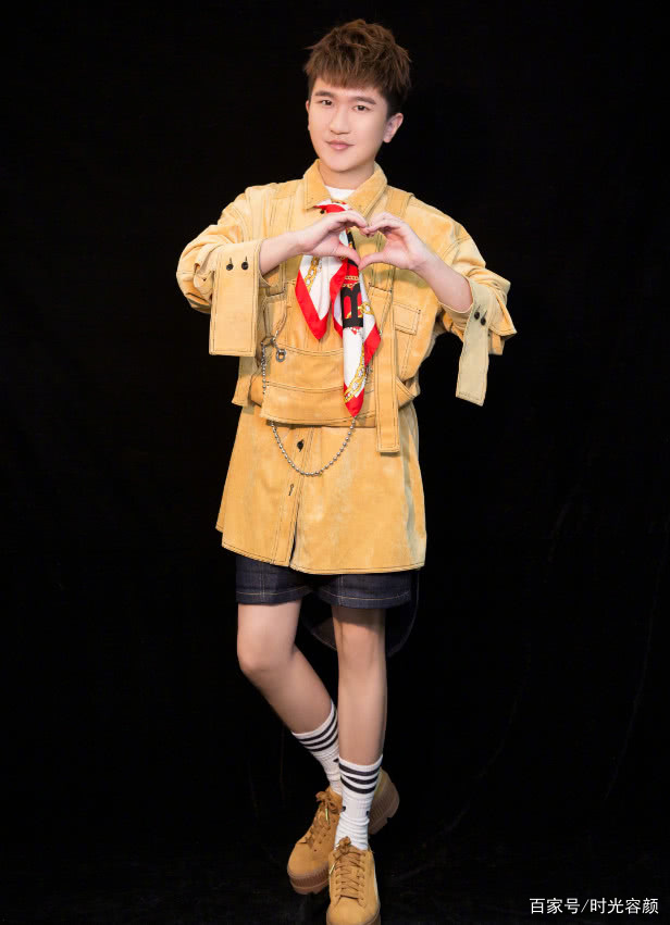 張大大穿了一件黃色的絨布夾克,搭配了一條褲腿比較寬大的牛仔短褲,然后用一雙中筒的運動風襪子搭配了一雙“馬蹄糕鞋”,把165CM的他顯得高了至少10厘米!